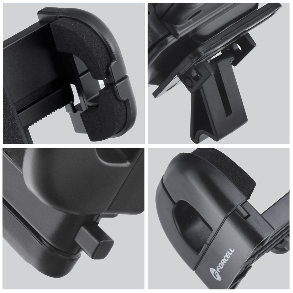 A Forcell tartónak köszönhetően a telefonod mindig kéznél lesz utazás közben. A kioldógombbal ellátott karok lehetővé teszik a készülék be- és kivételét. A tartós konstrukció lehetővé teszi a készülék függőleges rögzítését – a töltési és fejhallgató-bemenetek fedetlenek maradnak, így kényelmesen használhatod őket végig. Az erős bilincsek stabil helyzetben tartják az okostelefont dinamikus vezetés közben is, a puha hab pedig megvédi a készüléket a karcolásoktól .